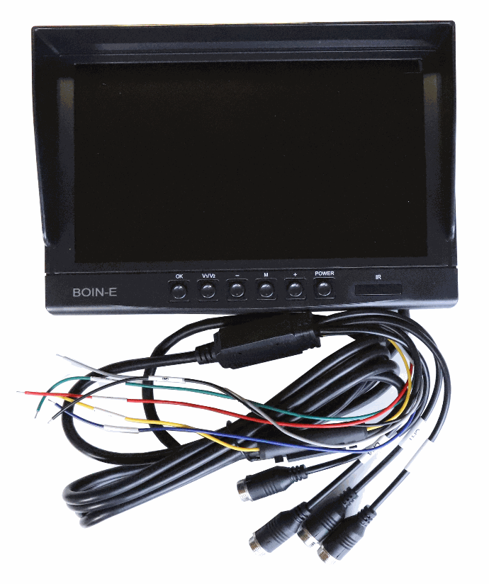 BOIN-E RV camera monitor kit comes with 2 HD cameras for dual revsersing for the pickup and traile, or side and rear view on the camper, avoiding blind spots, the 7" monitor support 4 channels for multi-view input, HD images could be split showded on the screen, real-time and loop recording